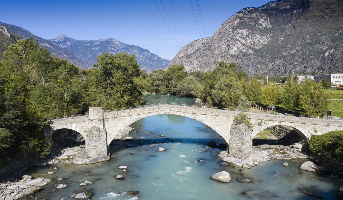 Lungo la Dora Baltea, a ridosso della omonima frazione, si trova questo splendido ponte a dorso d’asino di origine settecentesca. Recuperato dopo i danni dell’alluvione del 2000, si trova lungo la Via Francigena che collega Arnad a vicino comune di Hône.