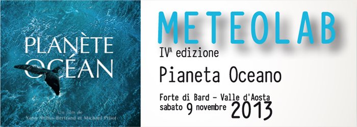 Sono aperte le adesioni alla quarta edizione di Meteolab, il laboratorio di climatologia promosso dal Forte di Bard in collaborazione con la Società Meteorologica Subalpina. L’evento si terrà sabato 9 novembre 2013, nella sala Olivero del Forte di Bard e sarà dedicato alle problematiche di mari ed oceani.