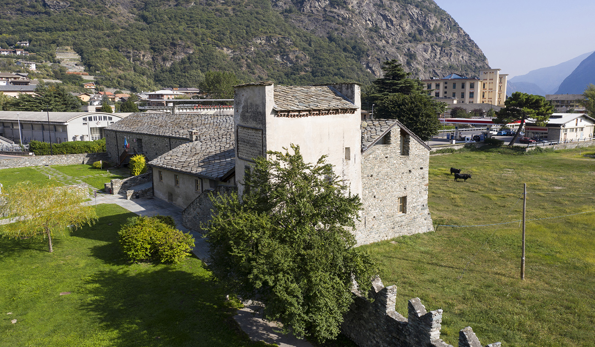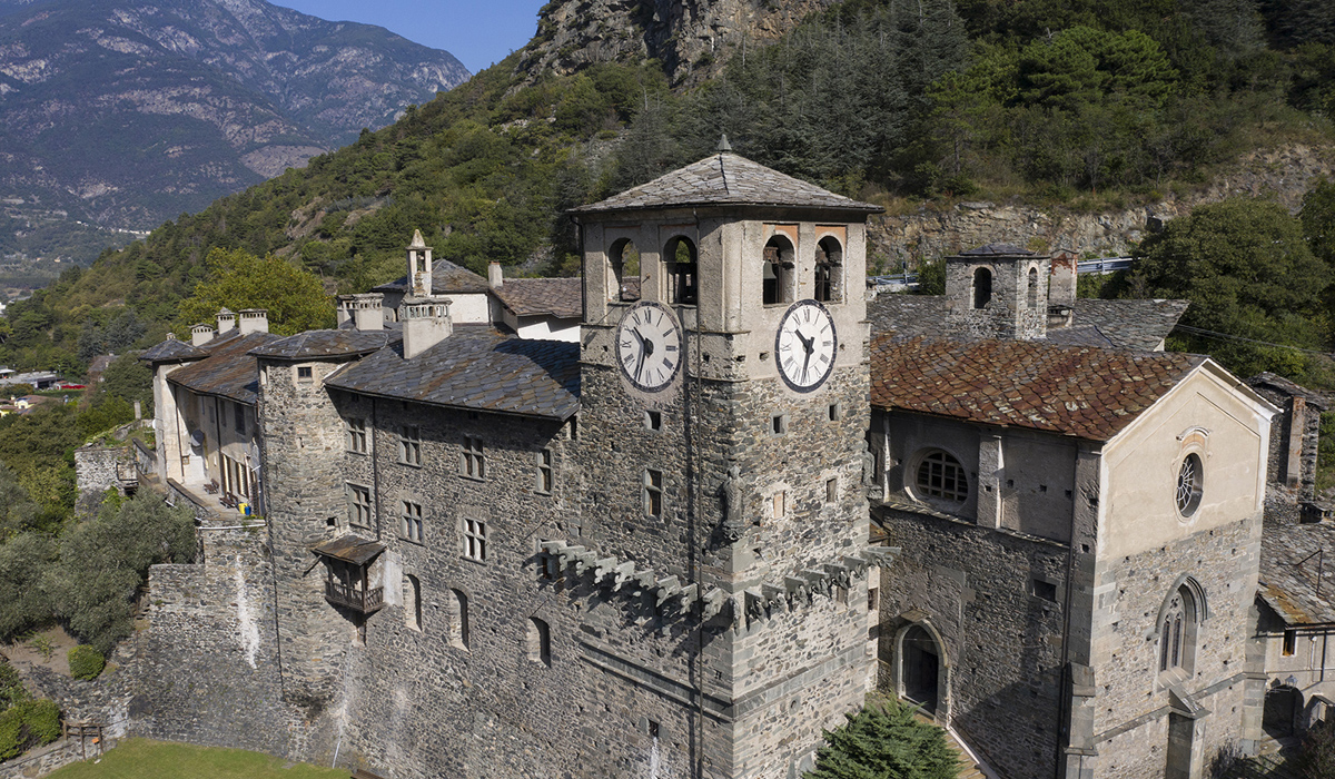 Construit autour de 1390 par Iblet de Challant, le château est un bel exemple de forteresse féodale. La structure massive de cet énorme cube de pierre (30 mètres de côté) est agrémentée de fenêtres géminées ou à croisée, de portes cintrées, ainsi que d’un monumental escalier et de colossales cheminées.