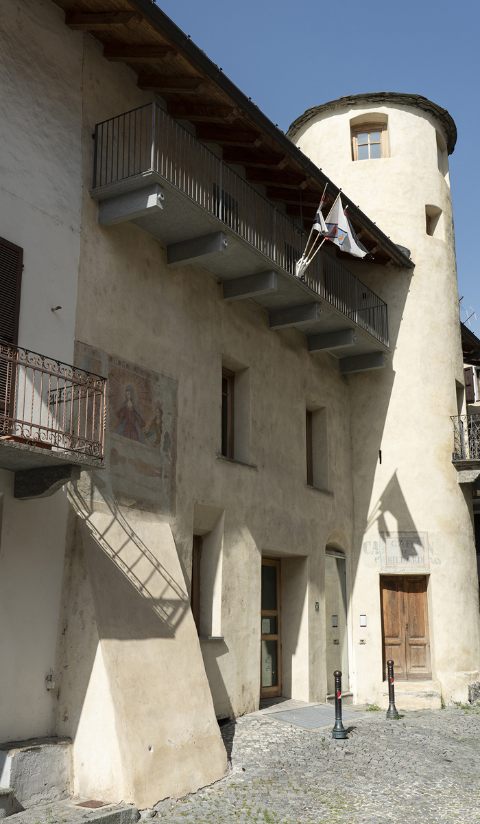 L’édifice, construit en 1512, fut utilisé comme écurie par la famille Challant. Il se compose d’un mur d’enceinte crénelé sur un côté, de la structure basse et allongée de l’étable à voûte rabaissée et de la tour du colombier, symbole de la seigneurie et privilège de la noblesse.