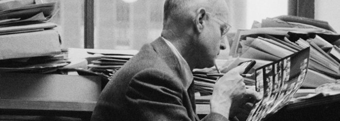 Henri Cartier-Bresson negli uffici Magnum di New York, 1959 © René Burri